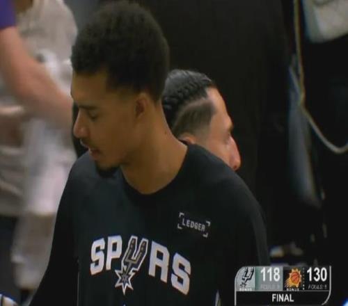 但不知道是昨晚没睡好还是今天吃错了东西,文班亚马在进攻端状态全无,虽然还有精彩的护筐,但上半场投篮是5投1中。