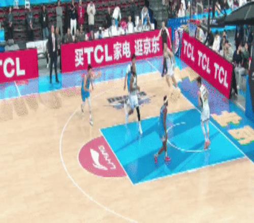 赵继伟伤缺,王岚嵚组织进攻,他比以往进步很多,一个漂亮的助攻给到莫兰德,后者上篮拿分。