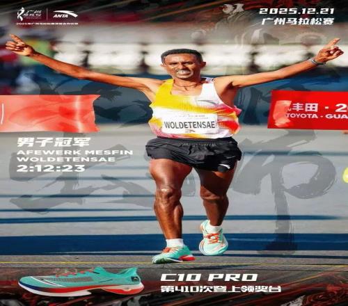 值得一提的是,他们的跑服以及脚上的C10 Pro跑鞋都印有同一个品牌logo——安踏。这意味着,在这些顶级跑者的背书下,安踏以近乎「包圆领奖台」的存在感,为这场年度收官战增添了浓墨重彩的一笔。