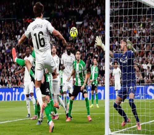 在贡萨洛之前,皇马上一个能够在西甲赛场上演“完美帽子戏法”(即左右脚和头球各攻入一球)的球员,还要追溯到2018年的C罗。出身皇马青训的贡萨洛本场只是第一次在西甲赛场进球,便上演如此神迹。贡萨洛本场的帽子戏法含金量相当高,他先是接到罗德里戈开出的任意球,头球首开纪录,用最简洁的方式为皇马打开胜利之门。下半场伊始,在贝蒂斯调兵遣将意图扳平比分之际,又是贡萨洛干脆利落的右脚抽射破门,为皇马基本锁定胜局。最后时刻贡萨洛在禁区内左脚脚后跟精妙破门,彻底让伯纳乌沸腾,这位小将第一次在伯纳乌球场有了巨星级别的待遇,全场球迷高唱他的名字,并在他被换下时送上整齐的掌声。