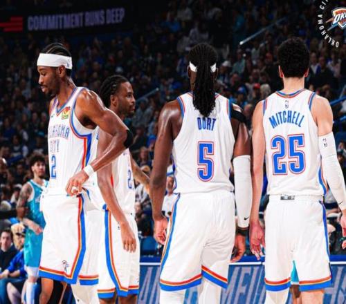 而最近两场比赛,雷霆先是3分惜败给了太阳,然后27分爆冷溃败给了东部排名倒数的黄蜂,创造了他们本赛季最大输球分差,也是第二次遭遇两连败。输黄蜂就算了,还输这么多,黄蜂也就三球鲍尔一名全明星球员。要说雷霆这段时间跌落神坛的原因,首先是心态出了问题,被马刺三杀之后,雷霆心态就崩了,可能都在怀疑自己到底是不是历史级别的强队。其次,雷霆确实远不及当年乔丹公牛、库里KD宇宙勇的统治力,毕竟他们还太年轻,阵容中也就亚历山大一个超级球星,其他球员都还需要历练。最后一点很重要,肖华的一句话把雷霆打回原形。