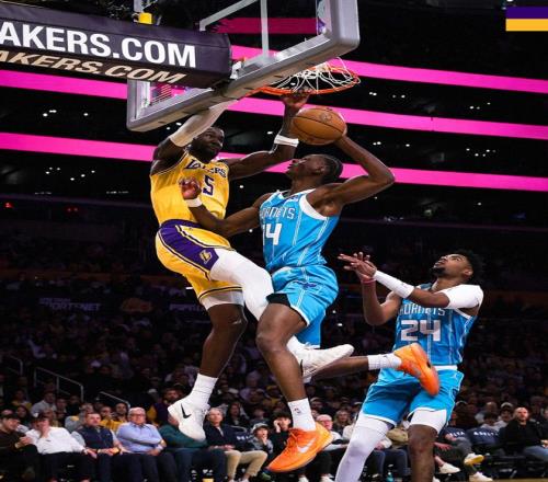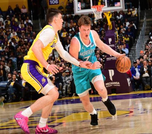 开场湖人三分球4中4一度领先黄蜂12分之多,黄蜂暂停后布里奇斯也连续命中三个三分球,黄蜂将分差缩小到5分。这场比赛科比-巴夫金登场了,他在南湾湖人场均26分,湖人刚给他一份10天短合同,可他登场就送了一个三分犯规,东契奇压哨三分命中。首节东契奇火力全开拿到19分2助攻,布里奇斯首节11分3篮板,两队首节战罢湖人39-30领先黄蜂。