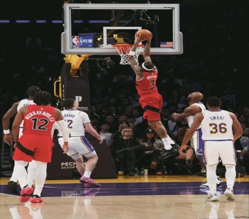 第四节决战,猛龙失去投篮信心,外线出现机会也没人敢出手,导致24秒进攻违例。比赛还剩7分钟,湖人拉开到两位数。最近7场比赛,巴恩斯三分球合计21中2。身为猛龙建队基石,投射短板太明显。整个第四节,猛龙三分9中1。