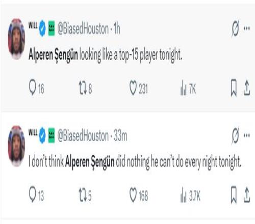火箭队记兰德里-宾克利赛后写道:申京完成了所有任务,这也是火箭队在进攻陷入困境的情况下仍能拿下比赛的原因。