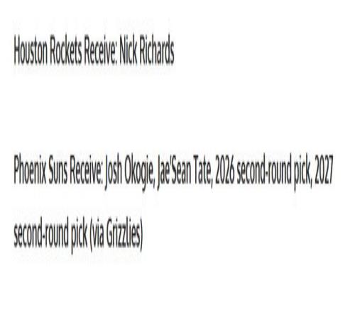 太阳得到:奥科吉+泰特+26年二轮签+27年二轮签。