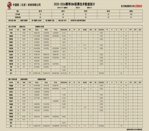 2025-2026赛季CBA常规赛第二十二轮,辽宁本钢对阵天津先行者的比赛于31日晚在辽宁体育馆进行,辽宁本钢队最终105:91击败天津先行者。