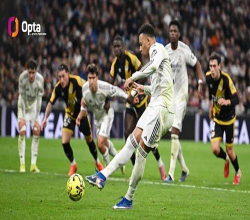 姆巴佩本赛季在各项赛事中已打进12个点球。上一位在单赛季打进更多点球的西甲球员是2014-15赛季的C罗,当时同样效力于皇家马德里的C罗打入了13粒点球。