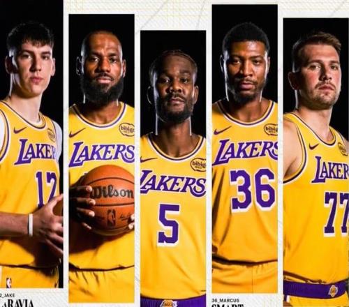 湖人队:詹姆斯、拉拉维亚、艾顿、东契奇、斯玛特!