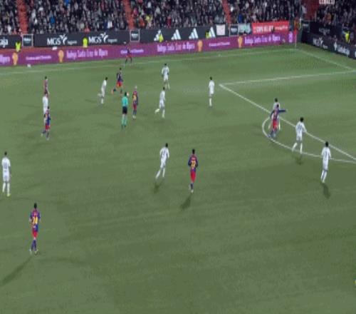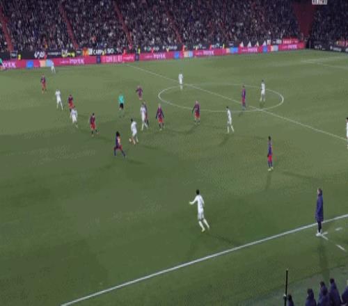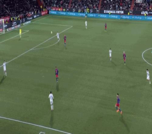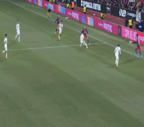第67分钟,费尔明妙传,奥尔莫插上打门被没收