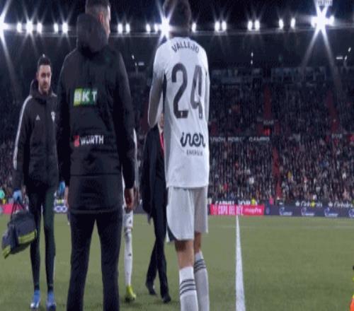 第30分钟,内瓦被亚马尔压到后伤退,巴列霍替补登场