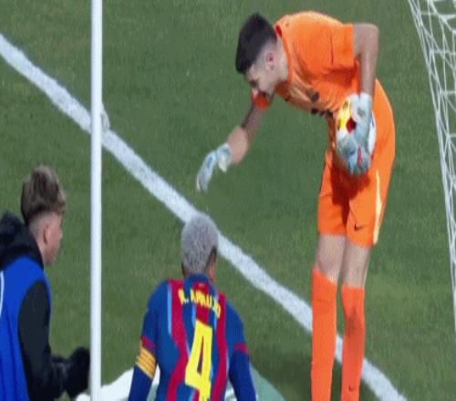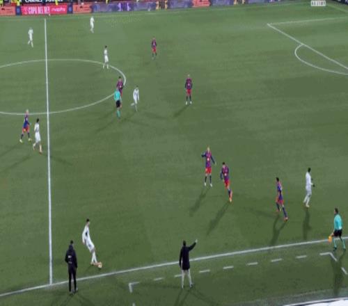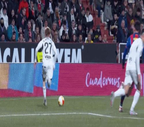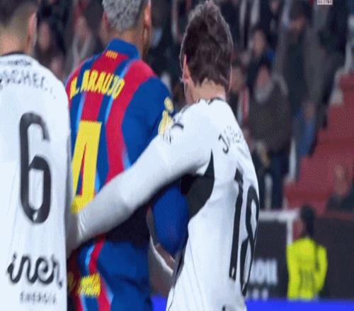 第44分钟,霍安-加西亚抱着球出底线鼓励阿劳霍,送对方角球