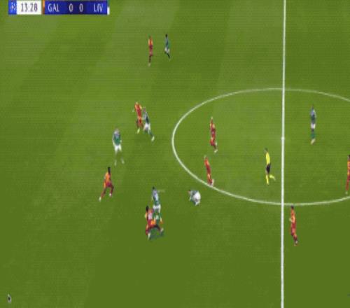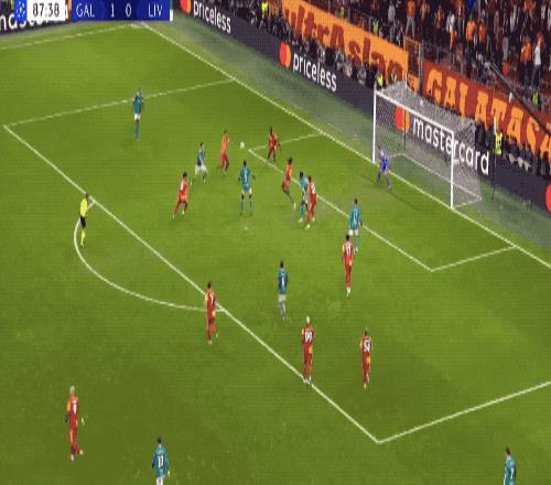 第48分钟,弗林蓬极限下底传中,埃基蒂克脚后跟射门,加拉塔萨雷门将及时反应,将球挡出。