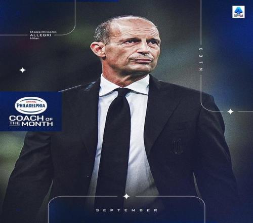 北京时间10月10日,意甲官方宣布,米兰主帅阿莱格里当选联赛9月最佳教练。