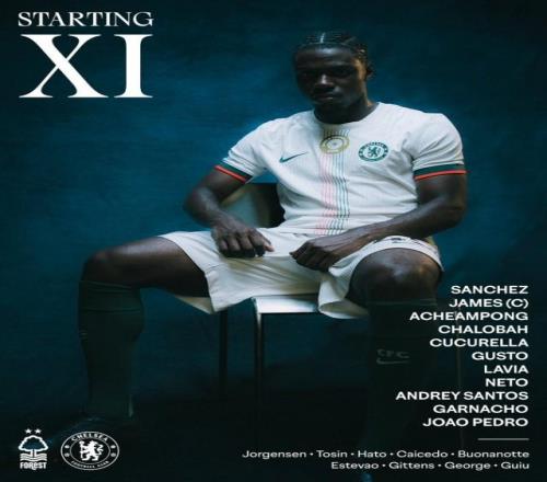 英超第8轮,切尔西客战诺丁汉森林,赛前切尔西首发阵容已经出炉,具体名单如下: 切尔西首发:罗伯特·桑切斯 / 古斯托、阿昌庞、查洛巴、库库雷利亚 / 里斯·詹姆斯、拉维亚 / 佩德罗·内托、安德雷·桑托斯、加纳乔 / 若昂·佩德罗