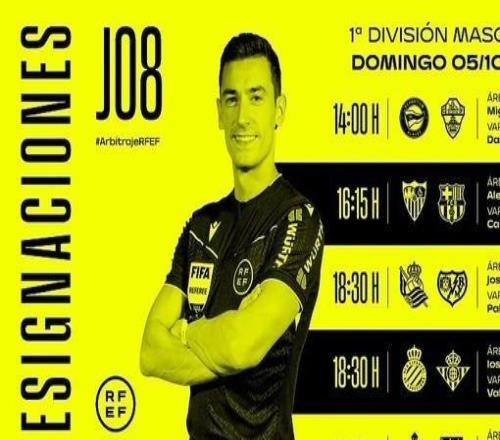 西班牙足协官方公布了周四西甲裁判安排,奥尔蒂斯将执法巴萨客战皇家奥维耶多。从本赛季开始,西班牙足协在赛前一天才公布西甲比赛的裁判安排。9月24日,西班牙足协官方公布了9月