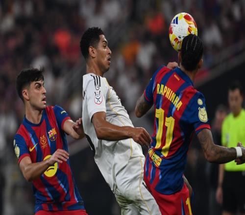 西班牙超级杯决赛展开争夺,巴萨对阵皇马。上半场,拉菲尼亚禁区首开纪录,维尼修斯一条龙破门,莱万多夫斯基单刀挑射破门,贡萨洛-加西亚扳平比分。下半场,维尼修斯兜射被扑出,亚马尔