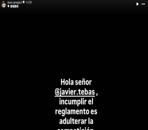 早些时候,特瓦斯对皇马方面反对西甲海外赛的言论进行了回应,北京时间10月21日晚,卡瓦哈尔在社交媒体上发表动态,再次对特瓦斯进行了回击。卡瓦哈尔写道:“你好,特瓦斯先生,违反规则