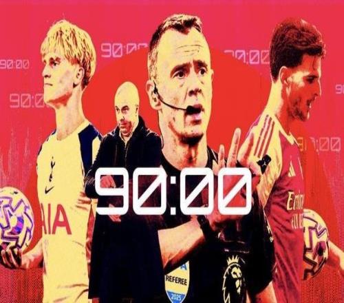 据数据统计,2025-26赛季英超场均比赛时长达到100分36秒,比上赛季增加了51秒,但球实际在场上滚动的时间仅为55分钟,占总时间的54.7%。相比之下,2023-24赛季的净比赛时间为56分59秒